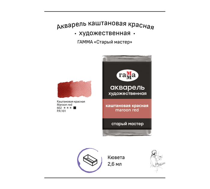 Акварель художественная Гамма «Старый мастер» каштановая красная, 2.6мл, кювета