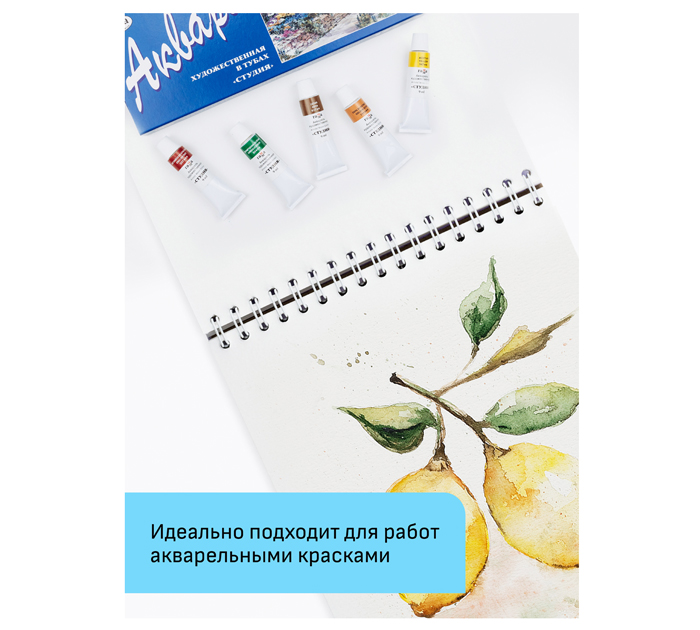 В альбомах Гамма Студия используется бумага Гознак, идеально подходящая для акварели. Выполнена из 100% целлюлозы, плотностью 200г/м2. Бумага хорошо впитывает влагу, не коробится от воздействия воды. Альбомы брошюрованы спиралью по короткой стороне. Последняя страница альбома представляет собой твердую подложку, служащую в качестве планшета. Можно использовать на пленере.