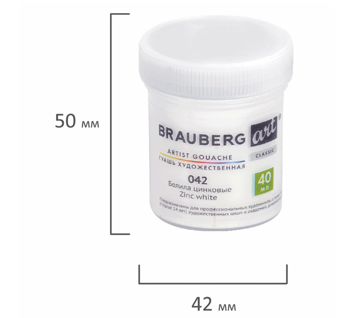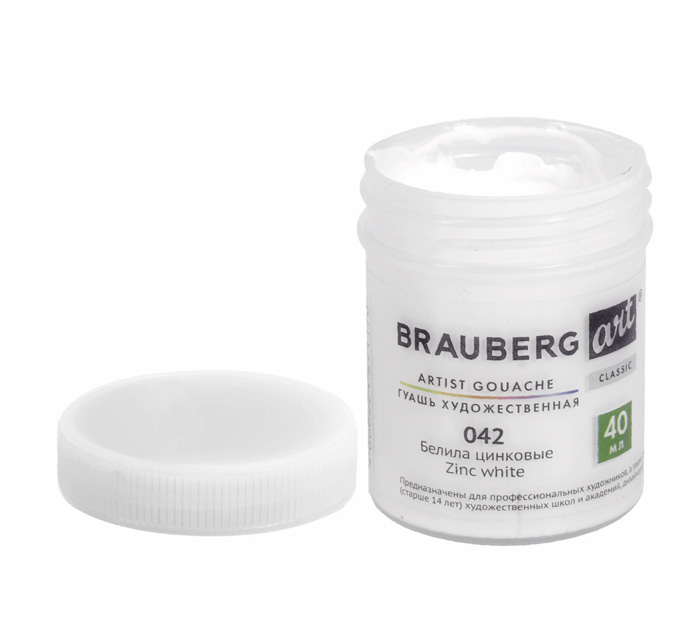 Гуашь художественная Brauberg «Art Classic» белила цинковые, 40мл