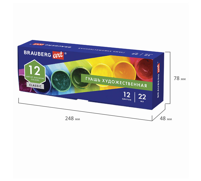 Гуашь художественная (набор) Brauberg Art «Classic» 12 цветов, 22 мл, 191585