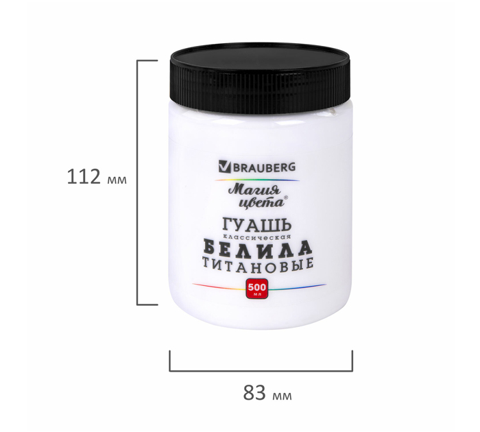 Гуашь художественная Brauberg «Магия цвета» белила титановые, 500мл