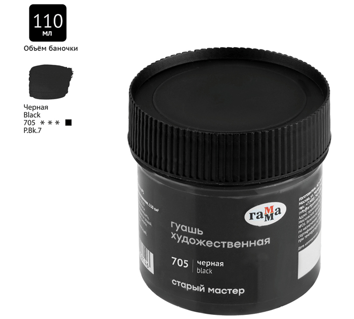 Гуашь художественная Гамма «Старый мастер» черная, 110мл, 121120110705