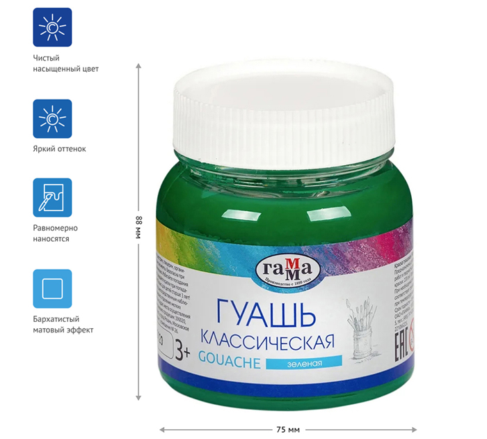 Гуашь художественная Гамма «Классическая» зеленая, 220мл