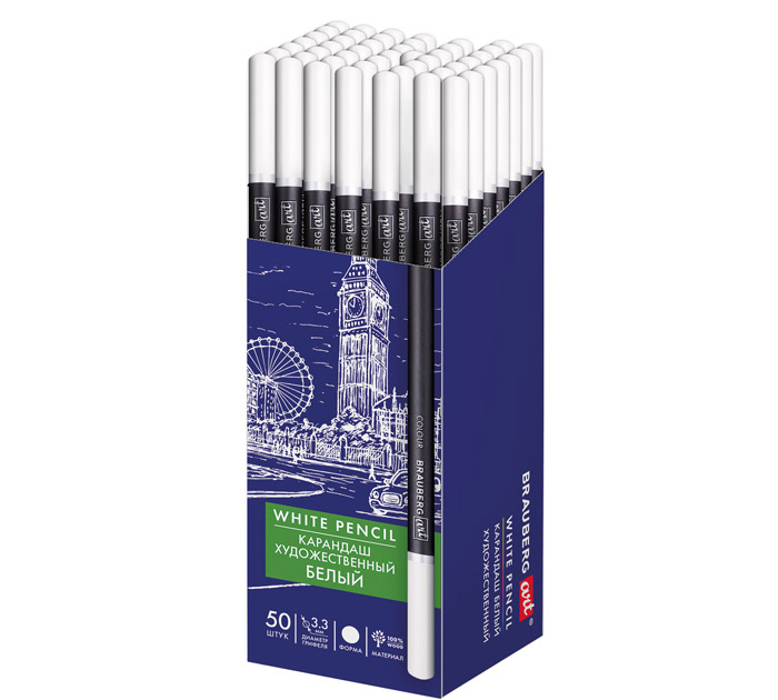 Карандаш художественный белый Brauberg Art «Classic» мягкий грифель, 3.3мм