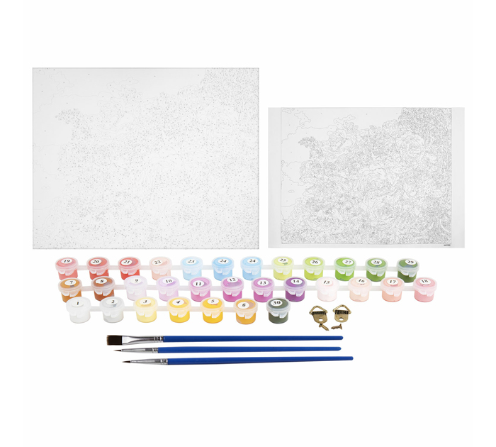 Картина по номерам ОСТРОВ СОКРОВИЩ «Букет» на холсте с подрамником размером 40х50 см – это отличный способ почувствовать себя художником и интересно провести время. Представлен сюжет по картине «Букет» российской художницы Ольги Дандорф.В набор входит: 1 хлопковый холст на подрамнике с контуром, 1 лист бумаги для тренировки, набор из 30 акриловых красок объемом 3 мл каждая, 3 синтетические кисти и комплект металлических креплений для подвешивания на стену. Краски укрывистые, быстро сохнут без потери цвета. Каждый цвет в наборе подходит под конкретный номер, благодаря чему нет необходимости смешивать краски. Однако, если вы хотите добиться нового оттенка, наши краски позволят это сделать благодаря отличной смешиваемости. 3 синтетические кисти разного размера идеально подойдут для закрашивания элементов различной сложности. Холст сделан из 100% хлопка плотностью 290 г/м2 с высококачественной печатью и отличным натяжением. При работе с картиной дополнительно могут понадобиться: емкость с водой для мытья кисти и салфетка для удаления воды с кисти (в комплект не входят). Подходит для потребителей всех возрастов (от 8 лет). Поставляется в картонной упаковке с ручкой.
