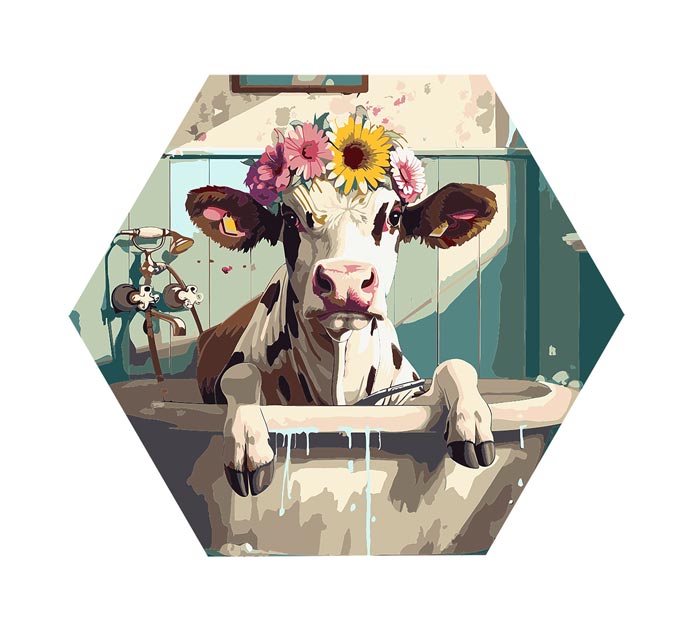 Картина по номерам холст на подрамнике Три совы Корова с цветами в ванной