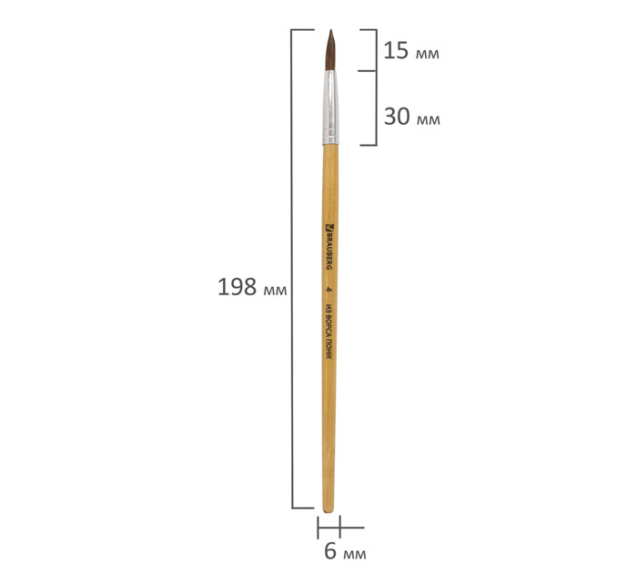 Кисть Brauberg № 4 подходит для работы с акварелью, гуашью, тушью, а также для прорисовывания различных деталей рисунка. Снабжена защитным пластиковым колпачком. Кисть из волоса пони отлично впитывает и отдает краску, хорошо держит форму, долговечна и надежна. Кисть № 4 позволит прорисовывать мелкие детали. Деревянную лакированную рукоятку кисти удобно держать в руке. Страна производитель - Китай.