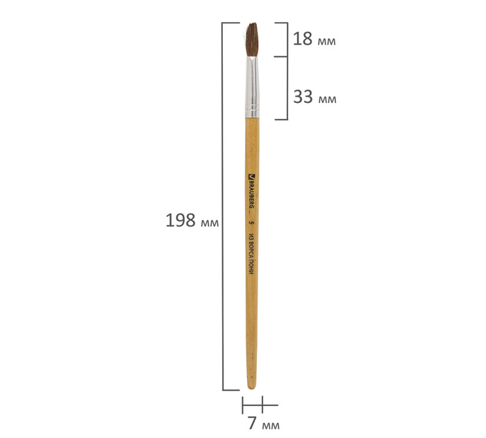 Кисть Brauberg № 5 подходит для работы с акварелью, гуашью, тушью, а также для прорисовывания различных деталей рисунка. Снабжена защитным пластиковым колпачком. Кисть из волоса пони отлично впитывает и отдает краску, хорошо держит форму, долговечна и надежна. Кисть № 5 позволит прорисовывать мелкие детали. Деревянную лакированную рукоятку кисти удобно держать в руке. Страна производитель - Китай.