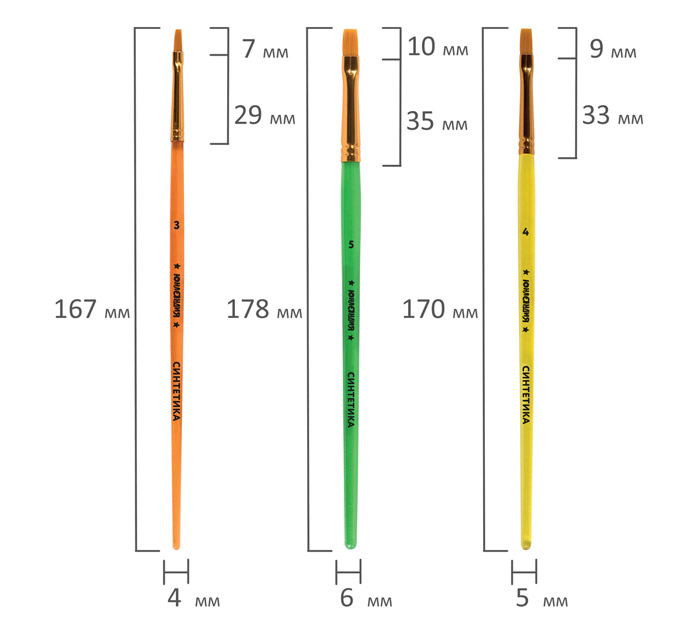 Кисти (н-р) 5шт. плоск.№1,2,3,4,5 Юнландия