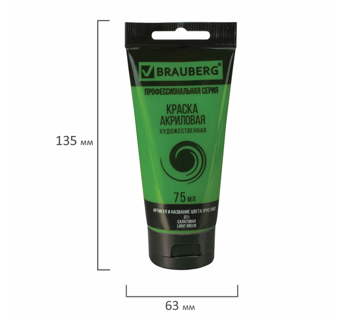 Художественная акриловая краска Brauberg Art «Classic» предназначена для живописи и декоративных работ. Используется при работе почти на любой поверхности: бумаге, картоне, холсте, дереве, коже и т.д. Краска насыщенного салатового цвета с легким глянцем. Быстрое высыхание без изменения цвета. Отличная укрывистость и светостойкость. Прекрасно смешивается. Благодаря высокой покрывающей способности для достижения оптимального эффекта достаточно нанести всего один слой краски. Разбавляется водой. Температурные пределы транспортирования и хранения - не ниже 0 градусов. Удобный дозировочный клапан. Не токсична и не имеет неприятного резкого запаха. Поставляется в пластиковой тубе объемом 75 мл.