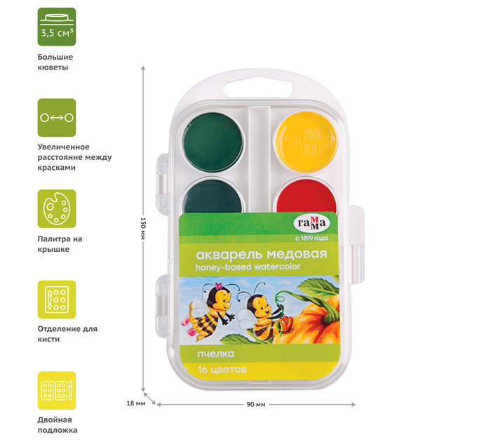 Краски акварельные Гамма «Пчелка» 16 цветов