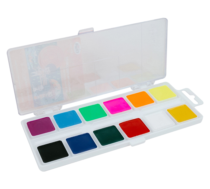 Медовая акварель «Оранжевое солнце» имеет расширенную палитру цветов, включающую классические цвета и цвета с различными эффектами. В наборе: 6 классических и 6 флуоресцентных цветов. «Волшебные» цвета дают возможность проявить фантазию и создать любой сказочный сюжет. Краски нетоксичны, легко смываются с рук и отстирывается с одежды, хорошо смешиваются. Кюветы с высокими бортиками и увеличенным расстоянием между красками предназначены для удобства в работе детей. Палитра для смешивания красок расположена на крышке. Объем кювет - 3,14 см3. Форма кювет - квадратная.