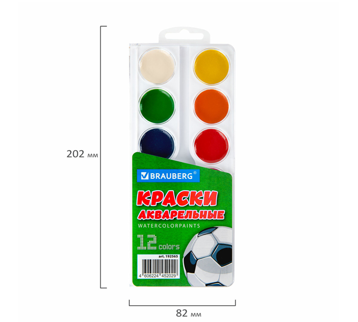 Краски акварельные Brauberg «Футбол» 12 цветов, медовые