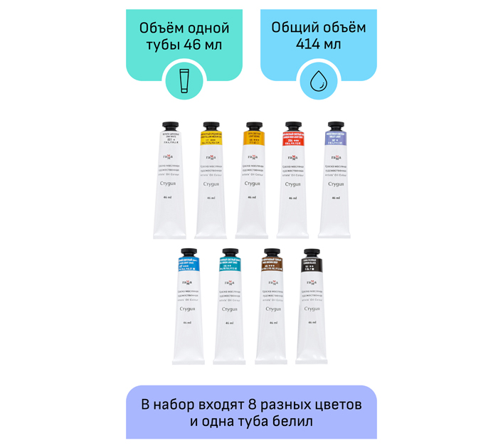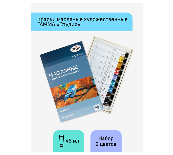 Краски масляные Гамма «Студия» 9 цветов, 46мл/туба