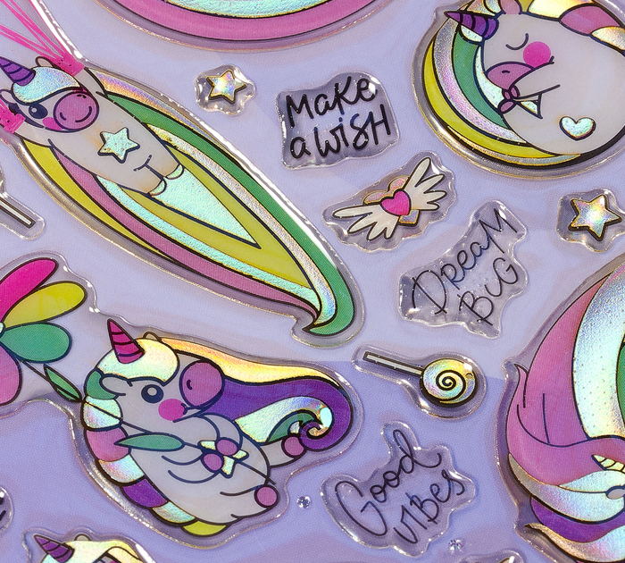 Наклейки Meshu «Rainbow unicorn» гелевые, 10х23см