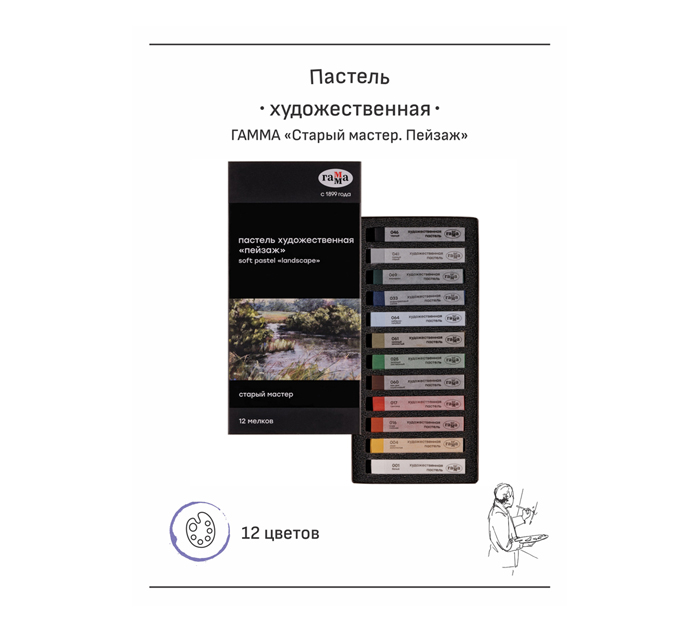 Пастель художественная Гамма «Старый мастер. Пейзаж» 12 цветов