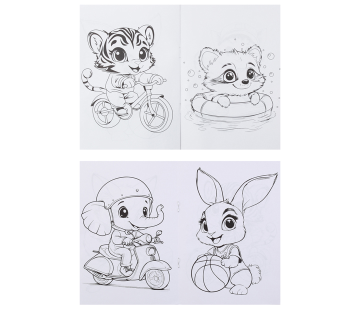 Раскраска Кокос «Милые животные» формата А5, 4 листа, скрепление на скобе, возраст 3+