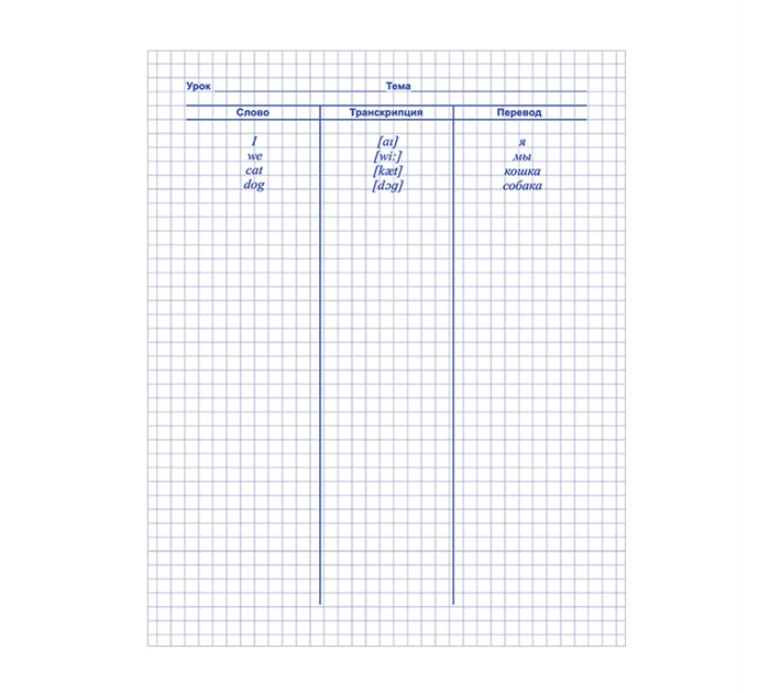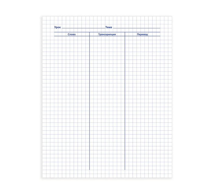 Предназначена для записи изученных слов, их повторения и самопроверки. На первой странице размещен алфавит, последних восьми — грамматический материал. Каждая страница словарика поделена на три части. Тетрадь рекомендована для записи словарных слов по английскому языку в ходе как учебного процесса в образовательных учреждениях, так и самообучения. Ее тематическая обложка имеет привлекательный дизайн и выполнена из качественного мелованного картона. Внутренний блок включает в себя 48 листов офсетной бумаги в клетку формата А5 плотностью 60 г/м2. Благодаря ее 100% белизне записи получаются контрастными и легко читаемыми. Скоба надежно скрепляет листы. Каждая страница имеет вид таблицы, состоящей из трех столбцов: слово, транскрипция, перевод. Такая структура способствует лучшему запоминанию и систематизации изучаемого материала. На первой странице расположен алфавит, восьми последних – грамматика, что может стать помощником в освоении языковых нюансов. Это делает тетрадь функциональным ресурсом для изучения и закрепления слов. Она пригодится как начинающим, так и повышающим свой уровень знаний. Купить такую тетрадь стоит для создания индивидуального словаря по английскому языку, это отличный способ сделать учебный процесс более организованным и эффективным. Предмет — иностранный язык. Серия — словарик. Количество листов — 48. Формат — А5. Линовка блока — клетка. Тип скрепления — скоба. Внутренний блок — офсет. Плотность внутренного блока — 60 г/м2. Белизна — 100 %. Обложка — мелованный картон. Дизайн — Флаг. Справочный материал — да. Длина — 205 мм. Ширина — 165 мм. Производитель — Россия.