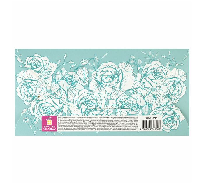 Конверт для денег Золотая сказка предназначен для вручения денежного подарка на торжественных мероприятиях по случаю бракосочетания. Конверт с тематическим свадебным принтом и надписью «С днём свадьбы!» изготовлен из высококачественного картона плотностью 215 г/м2. Отделка - блестки. Размер - 166х82 мм.