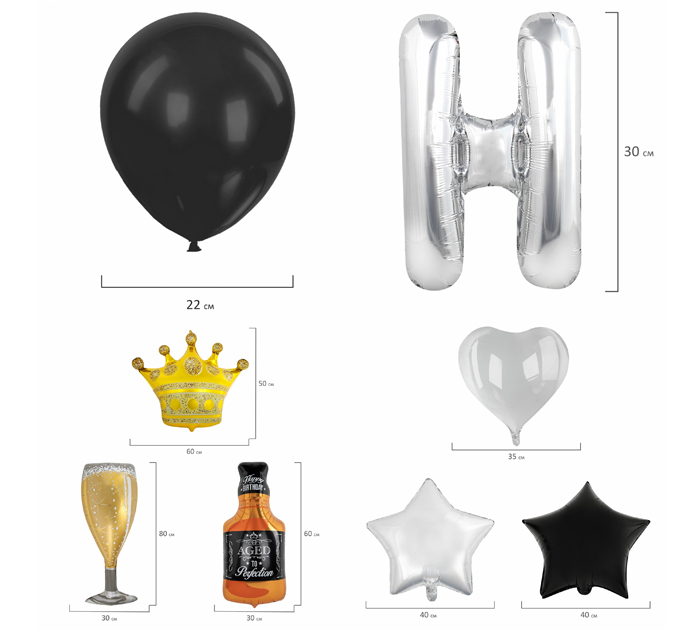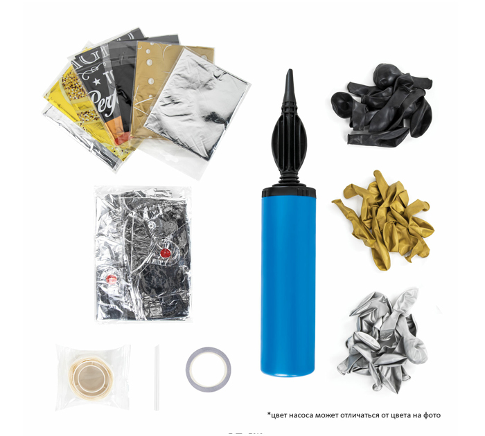 Воздушные шары НАБОР ДЛЯ ДЕКОРА «Happy Birthday» BRAUBERG предназначены для украшения помещений, создания различных композиций и элементов. Оформление воздушными шарами - простой и доступный способ сделать праздник еще ярче! В набор для декорирования входят:52 шт. высококачественных однотонных шаров классической формы золотистого, серебристого и чёрного цветов и фигурные шары разного размера (от 22 см до 80 см). Шары в наборе изготовлены из натурального латекса (латексные), обеспечивающего прочность при аккуратном использовании, и из прозрачной лавсановой пленки (фольгированные), покрытой специальной краской. В результате поверхность становится похожей на фольгу. 1 шт. набор клеевых точек для склеивания воздушных шаров между собой и создания разных декораций и гирлянд 1 шт. ручной двухходовой насос надувает воздушные шарики при движении в обе стороны, что существенно экономит время и силы