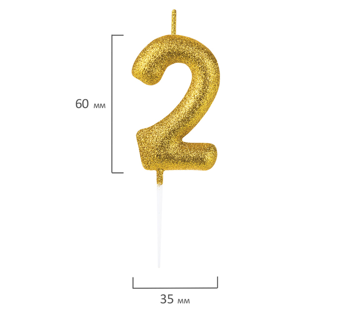 Свеча Золотая сказка цифра 2, с глиттером, на шпажке, 6см