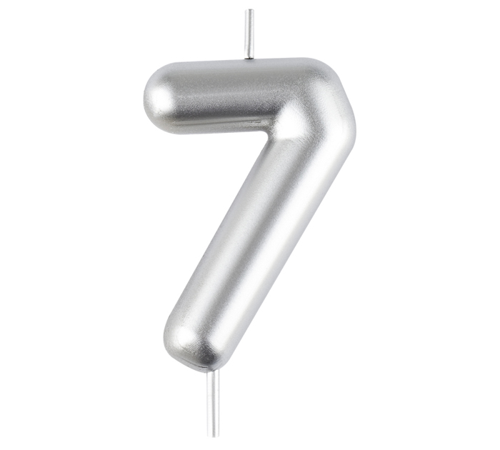 Свеча Meshu цифра 7, с держателем, серебряная, 6см